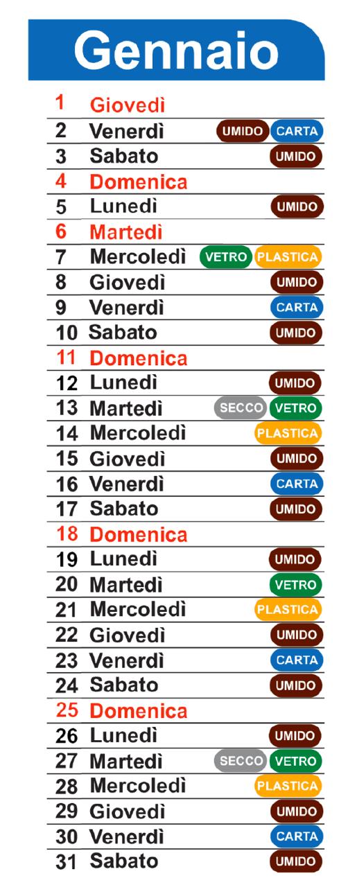 - Avviso raccolta differenziata - calendario Gennaio 2025